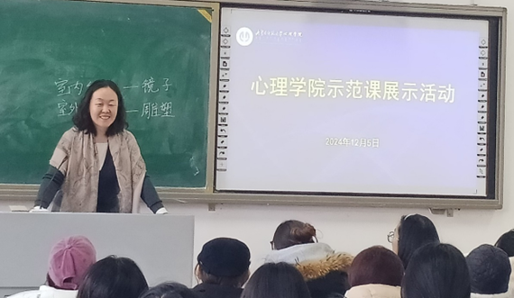 活动中,王欣瑜老师展示题为《精神分析学派的理论发展与演变》的公开课,王老师从课程思政的角度出发,通过案例分析、情景想象、故事教学相结合的教学方式,栩栩如生的构建出精神分析学派理论发展的画卷,帮助学生将《心理学史》的知识融会贯通,真正做到“以学生为中心”。格根图雅老师展示题为《人格类型及特点》的公开课,格老师精心设计教学方案,深入浅出的讲解知识点,帮助学生进一步夯实了人格类型的知识点,充分调动了学生学习的积极性和主动性,增强了学习的自信心与探索欲。