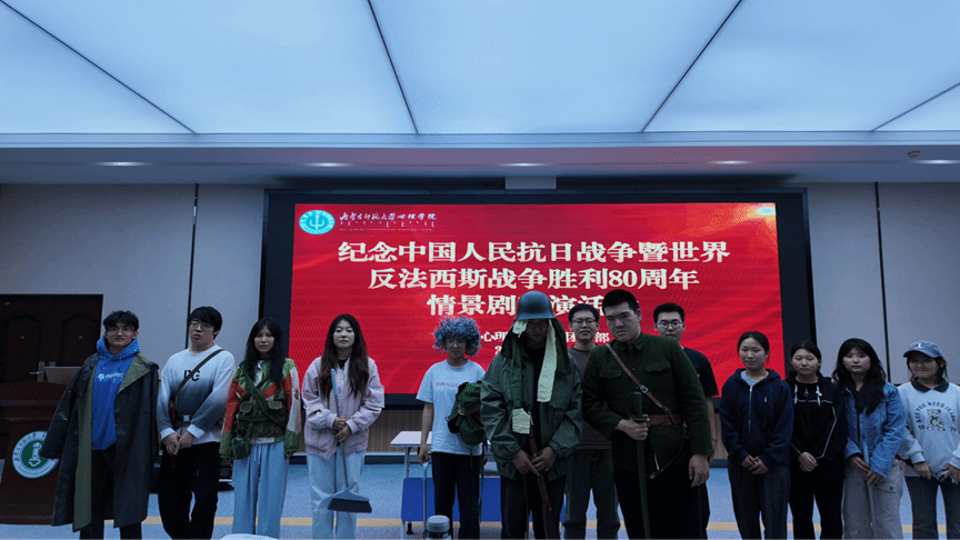 为纪念中国人民抗日战争暨世界反法西斯战争胜利80周年,激励学生铭记历史、缅怀先烈、珍爱和平、开创未来,我院组织开展了爱国主义情景剧教育活动,让抗战精神滋养时代新人,以理想信念照亮青春征程。