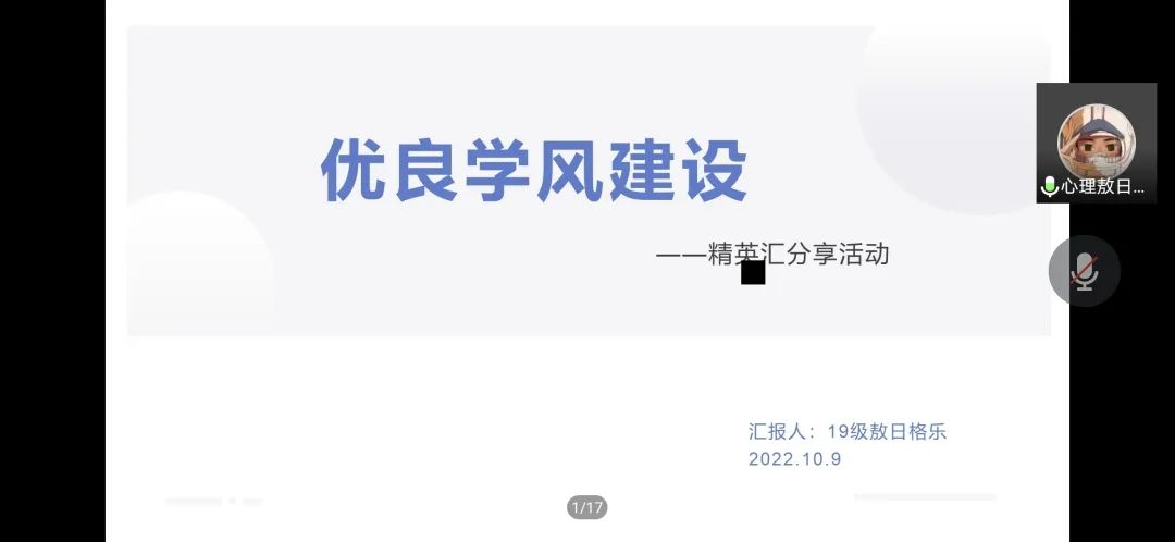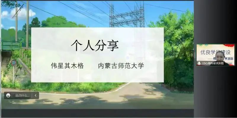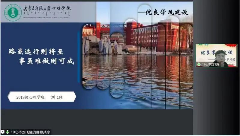 勤学如春起之苗,不见其增,日有所长:辍学如磨刀之石,不见其损,日有所亏。没有知识的滋养,心灵易贫瘠,灵魂易空虚。对待学习,要博学之,审问之,慎思之,明辨之,笃行之。为进一步加强我院优良学风建设,yl9193永利集团于10月9日下午三点在线上举办优良学风建设-精英汇分享活动。本次会议由团总支书记刘敏主持,敖日格乐、刘飞隆、伟星其木格进行分享。