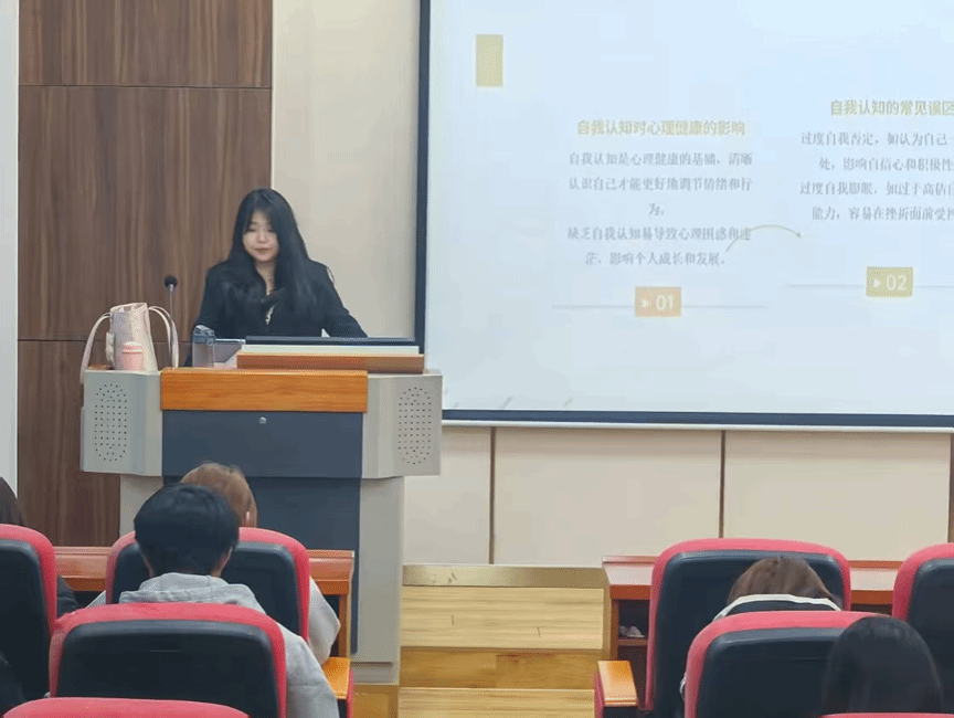 活动伊始,心理工作室负责人武思妤巧妙地以“什么是心理健康”这一贴近生活的话题为切入点,引发同学们的深入思考,进而引出自我认知的重要性。通过生动的案例与深刻的剖析,学生们逐渐领悟到,接纳自我绝非妥协,而是一条通往成长的必经之路。只有正视自己的不足,才能明确努力的方向,从而更好地实现自我提升。这一观点如同一盏明灯,照亮了学生们内心的迷茫,让他们在自我接纳与成长之间找到了平衡。