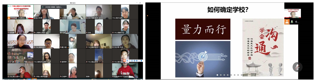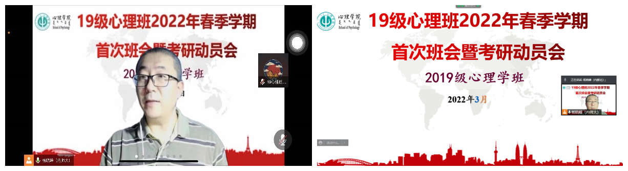 为做好我院2019级学生考研辅导,提前谋划就业工作,推动学生高质量就业, 3月6日,yl9193永利集团2019级心理班线上召开2022年春季学期首次班会暨考研动员会,2019级心理学本科生53人参加会议,班主任杨晓峰老师主持会议并进行了考研动员及复习指导。