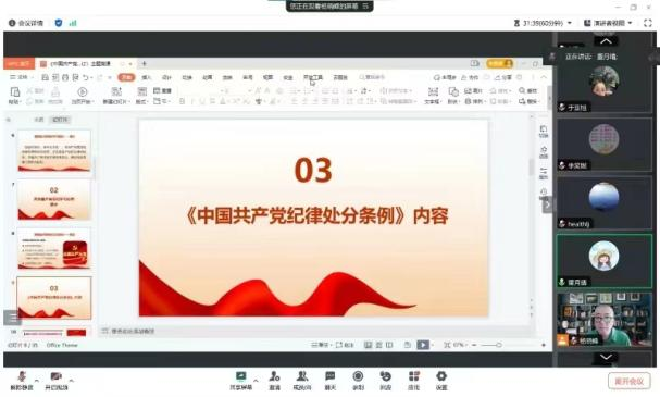 会上,党支部书记杨晓峰、组织委员董月晴及宣传委员王双喜对《条例》总则部分分别进行了逐字逐句的领学。