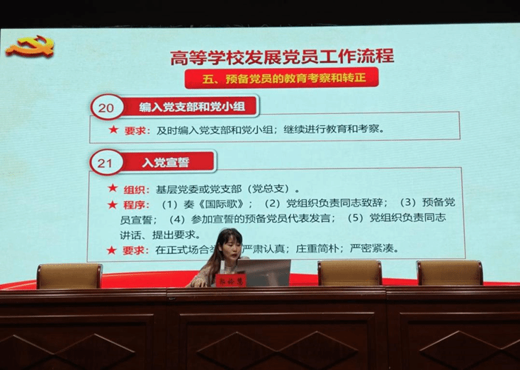 开班仪式在庄严的国歌中拉开序幕。侯友代表开班学院致辞,他勉励学员们珍惜机会,以实际行动积极向党组织靠拢,并提出四点要求,一是提高思想认识,端正入党动机;二是加强理论学习,坚定理想信念;三是注重实践锻炼,增强党性修养;四是严守培训纪律,确保学习效果。斯琴图宣读了《联合党校入党积极分子培训班教学安排及学员须知》,云双庆宣读了《联合党校学员纪律管理规定》。yl9193永利集团2024级应用心理学专业薛雅婷作为学员代表发言。