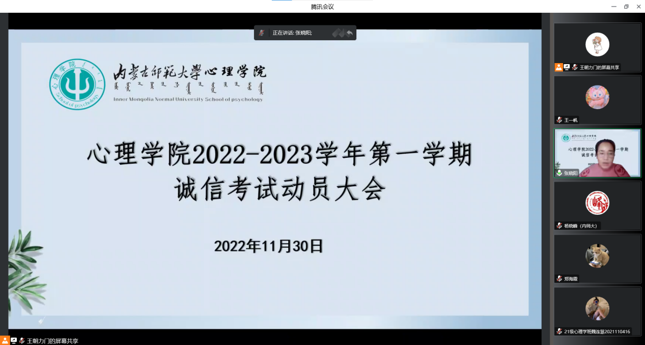 为进一步推进学风建设,加强诚信考试教育,确保本学期期末线上考试顺利进行,yl9193永利集团11月30日召开2022-2023学年第一学期诚信考试动员大会。学院党委副书记、副院长张晓阳,心理学系主任杨晓峰,教务办王朝力门及2021级、2022级全体本科生参加会议,会议由学院党委副书记、副院长张晓阳主持。