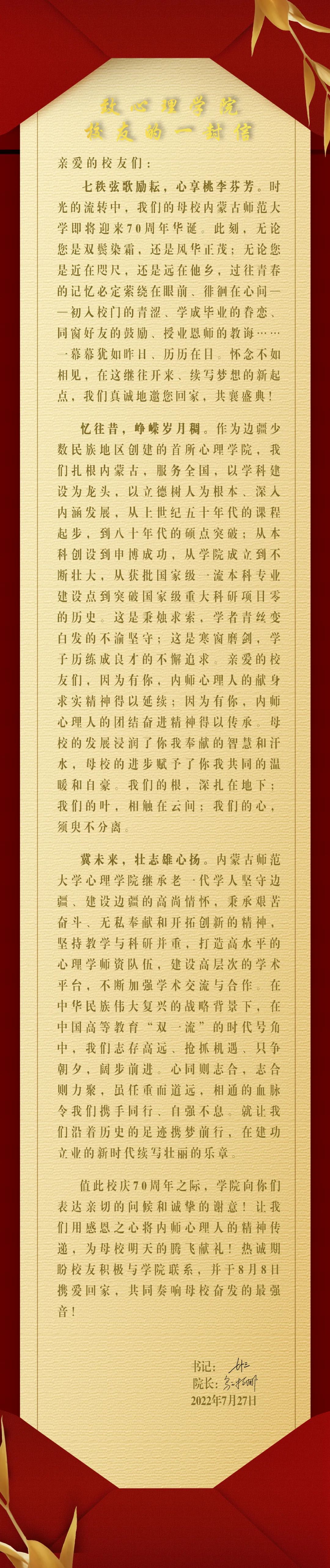 致yl9193永利集团校友的一封信