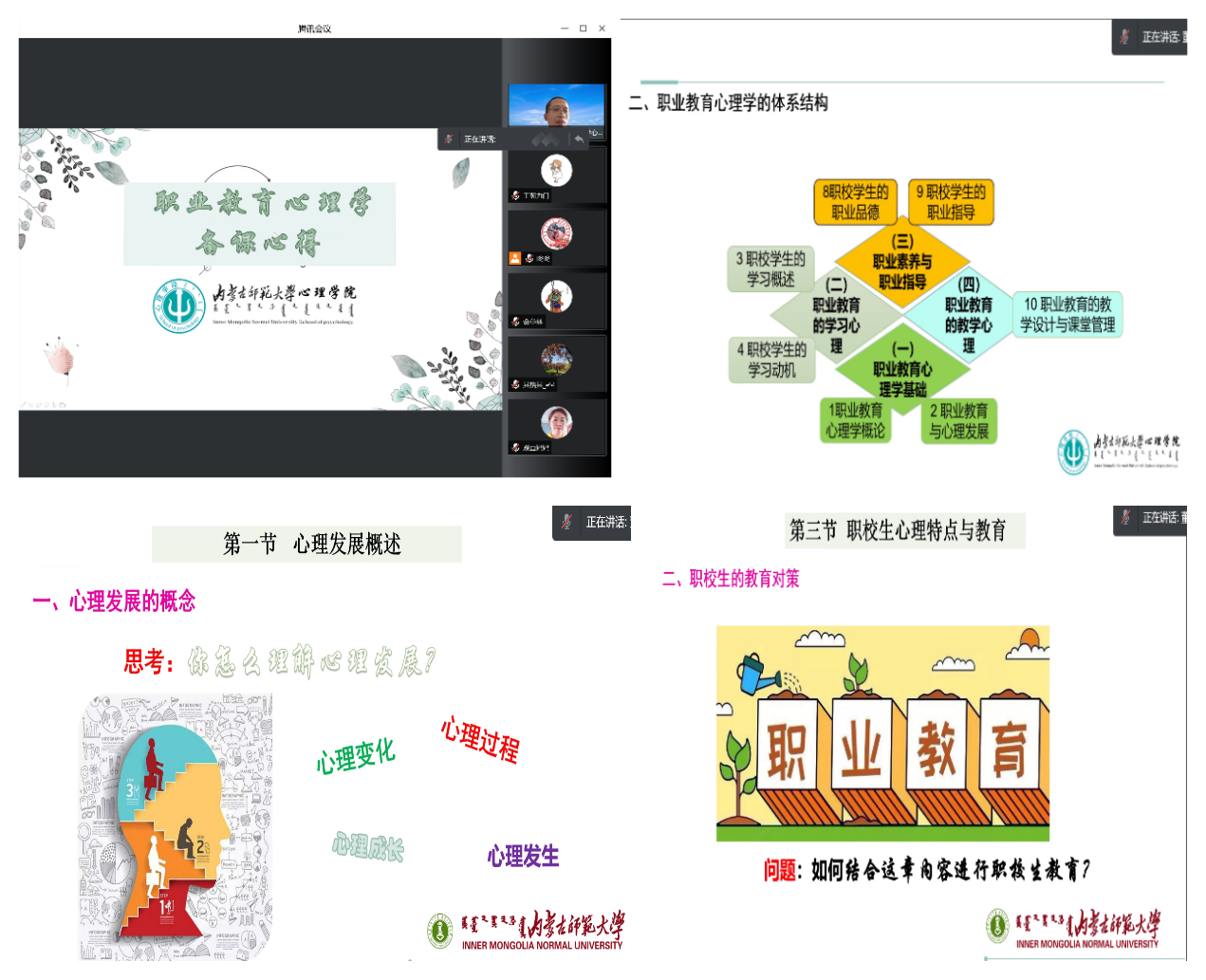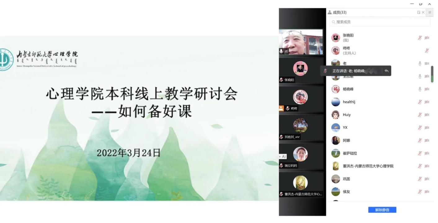 为了进一步提升线上教学效果,促进本科教学质量,3月24日下午,在各教研室充分开展线上教学研讨的基础上,yl9193永利集团召开“如何备好课”——本科线上教学研讨会。学院党委书记七十三、院长乌云特娜、党委副书记张晓阳、副院长侯友及全体教师参加。心理学系主任杨晓峰、中学教育心理学教研室主任解翠玲、职业教育心理学教研室主任董洪杰、心理健康教育教研室主任赵媛分别做了经验交流和分享。