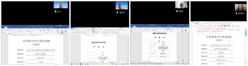 为提升我院教师2022年国家基金项目的申报质量,学院于2月26日下午在线上召开项目申报论证会。学院党委书记七十三教授、院长乌云特娜教授、副院长侯友副教授、杨伊生教授和拟申报国家项目的教师参与。