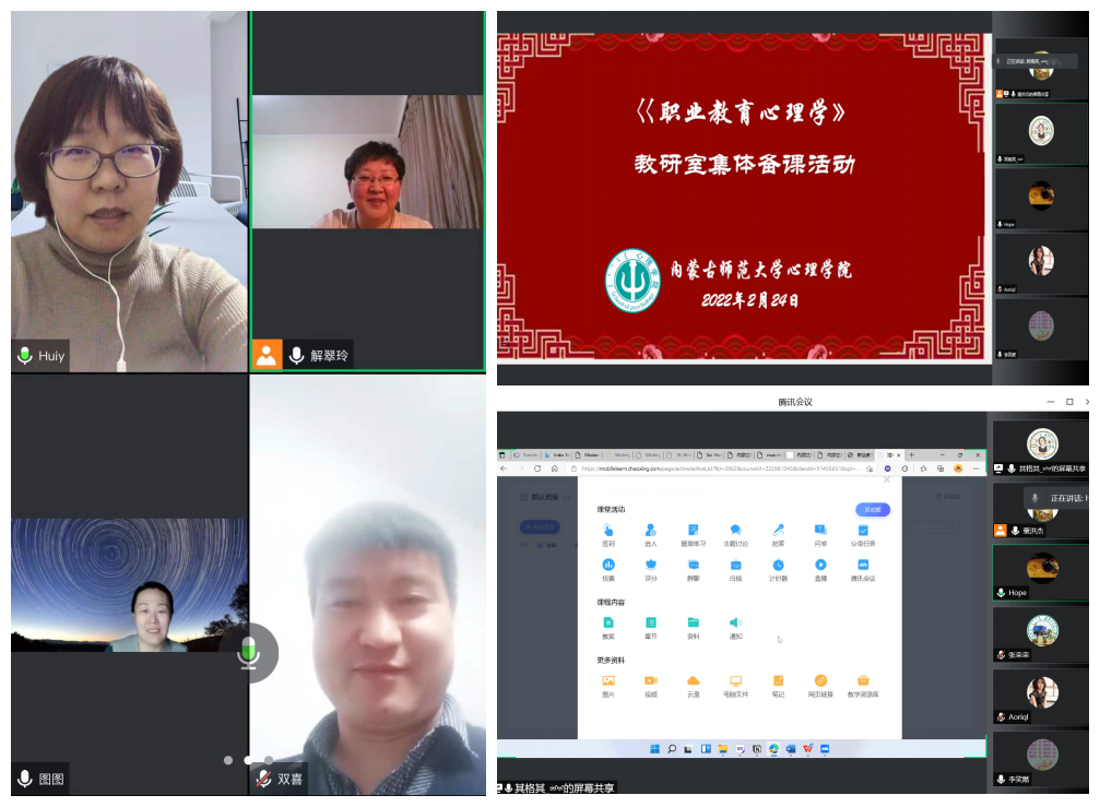 为适应新冠肺炎防控形势下的线上教学,yl9193永利集团各公共课教研室分别于2月22日与2月24日组织开展了《中学教育心理学》《职业教育心理学》线上集体备课活动,本学期授课教师均在线参加。