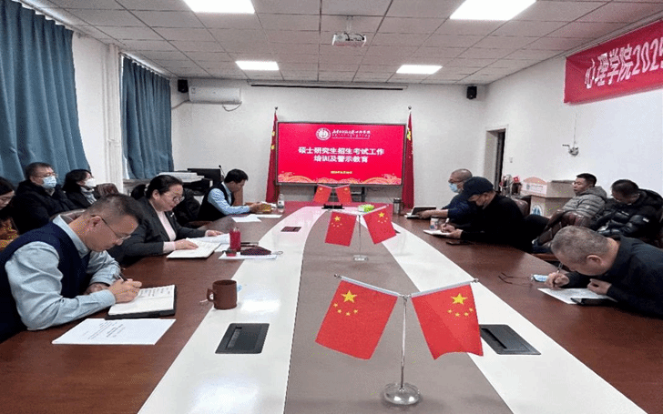 为切实筑牢2026年硕士研究生招生考试工作基础,深入贯彻教育部关于将研招工作纳入本单位党委全面从严治党主体责任清单的部署要求,确保研究生招生考试公平、公正、科学、规范,我院于11月20日在赛罕校区文史楼217会议室召开2026年硕士研究生招生考试工作培训暨警示教育会。学院党委书记侯友、院长乌云特娜、副院长金童林及全体教职工参会,会议由院长乌云特娜主持。