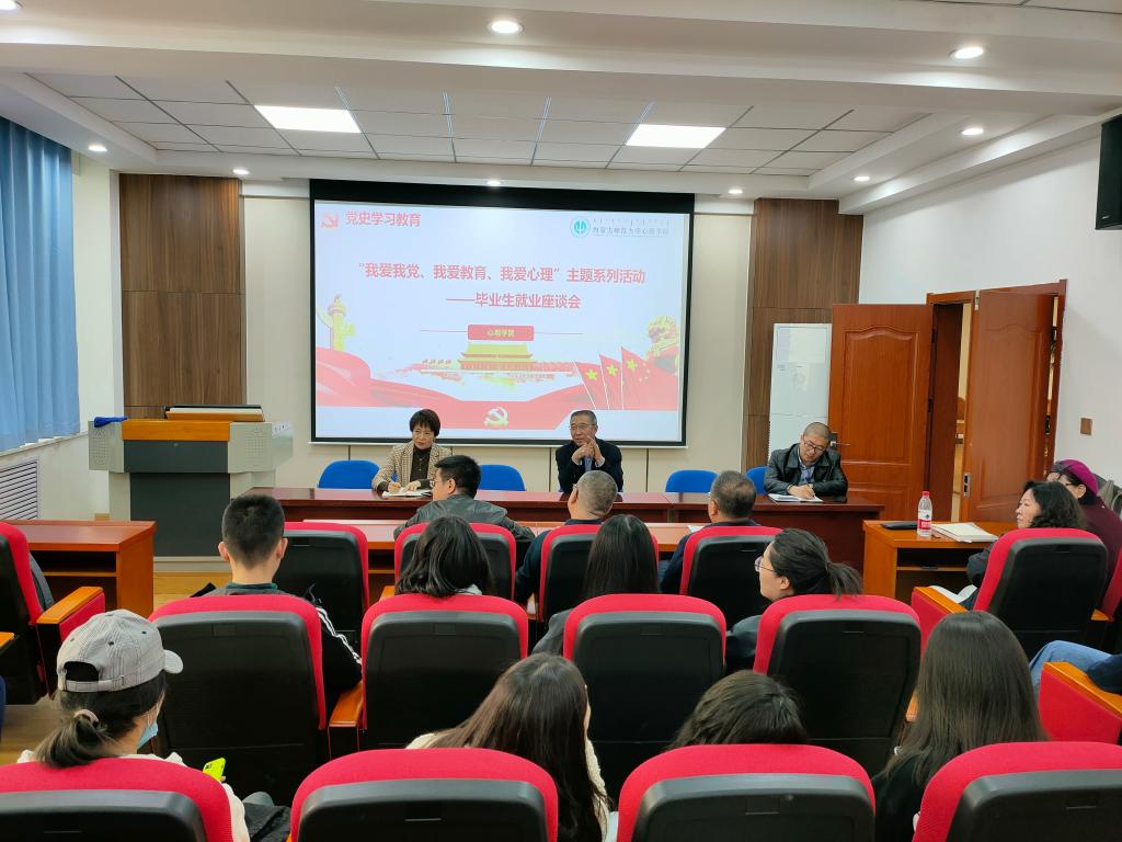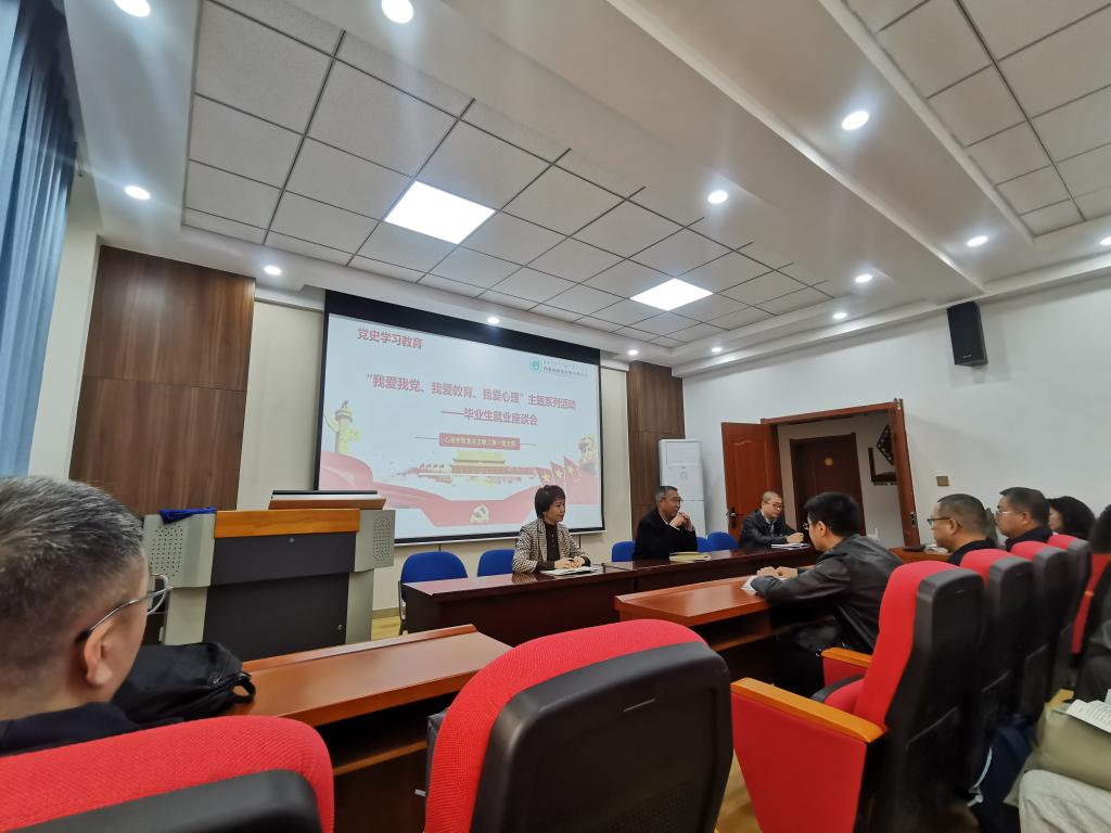 为深入开展党史学习教育,扎实开展“我为师生办实事”实践活动,聚焦学生“急难愁盼”问题,以促进毕业生高质量就业为抓手,努力推动党史教育成果转化为工作动力和成效,4月15日下午,yl9193永利集团党总支教工第一党支部开展“我爱我党、我爱教育、我爱心理”主题党日活动——毕业生就业师生交流座谈会。党总支书记七十三、副书记张晓阳及教工一支部全体成员参会。