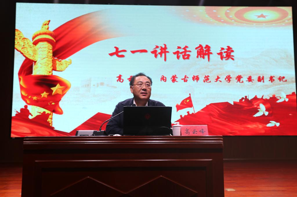 9月23日下午,校党委副书记高云峰在盛乐校区图书馆二楼报告厅为yl9193永利集团、旅游学院、历史文化学院、文学院、政府管理学院和科学技术史研究院全体师生党员作“习近平总书记在庆祝中国共产党成立100周年大会上的重要讲话精神解读”专题党课。旅游学院党委书记郭明华主持党课。